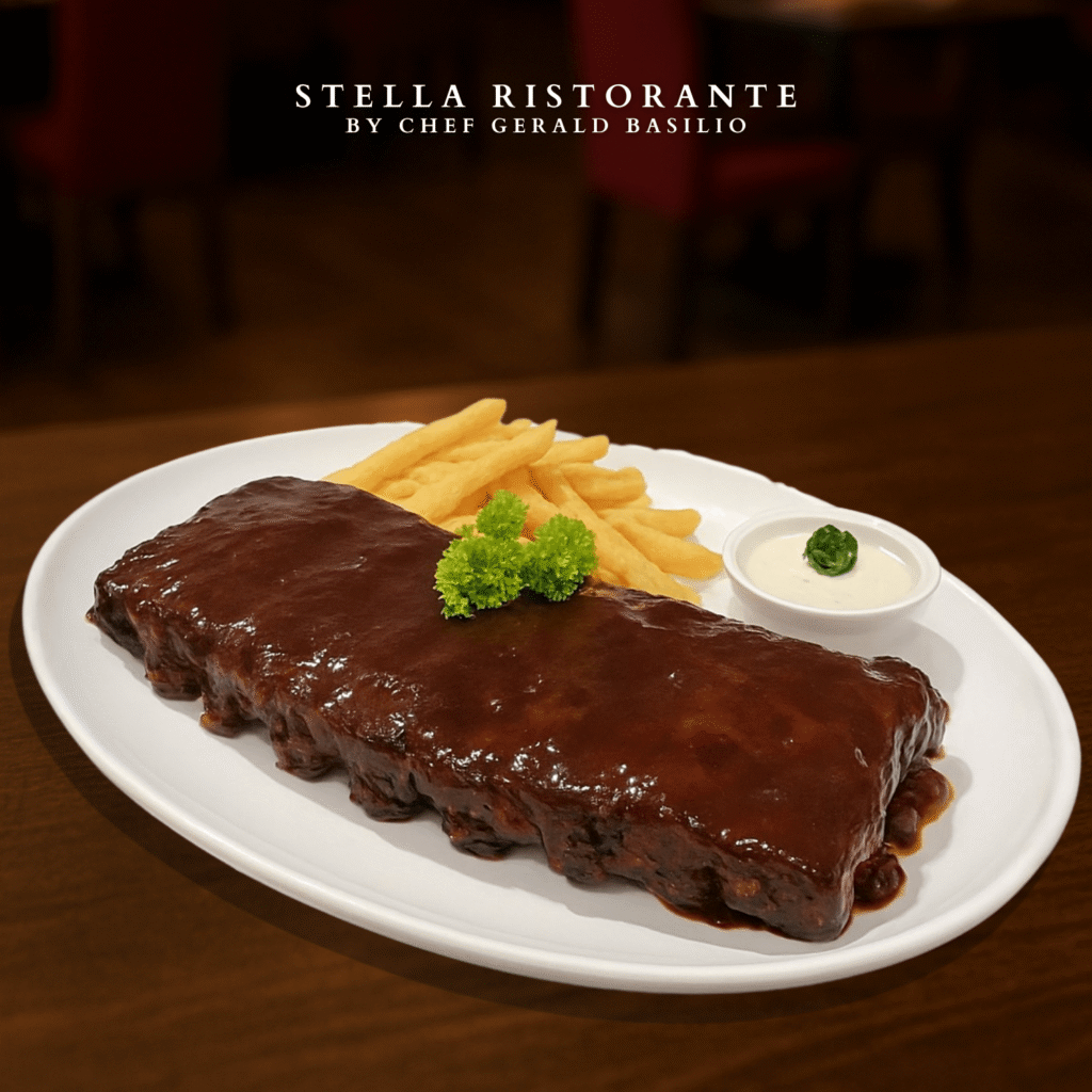 Tender, slow-cooked baby back ribs glazed with a rich, flavorful sauce and grilled to