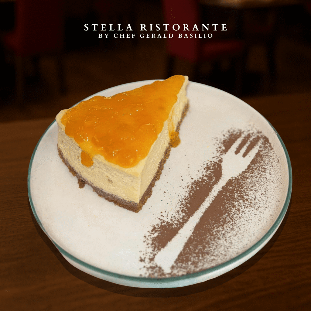 Creamy, smooth cheesecake with a delicate sweetness and a buttery crust.