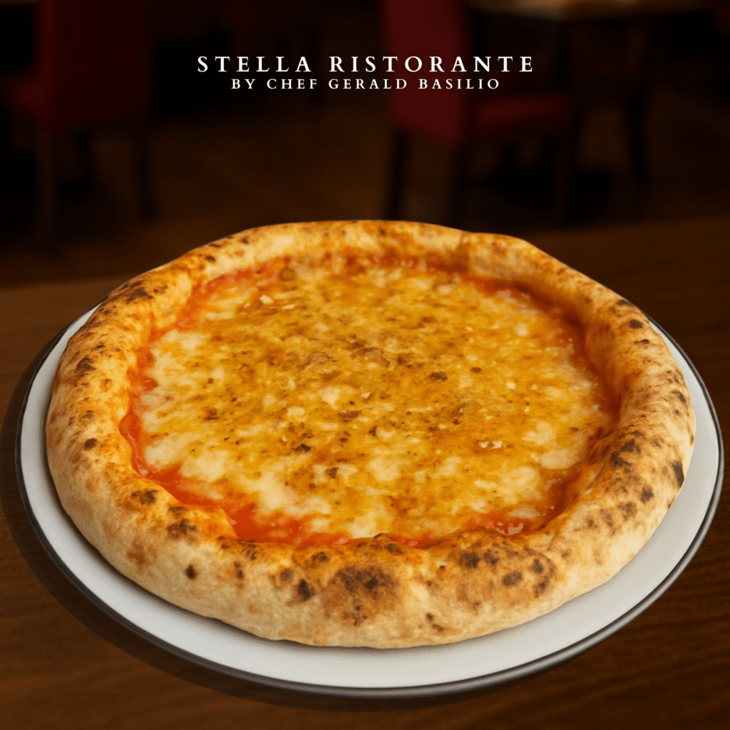 A signature handcrafted pizza with a crisp crust, premium toppings, and a balance of bold,